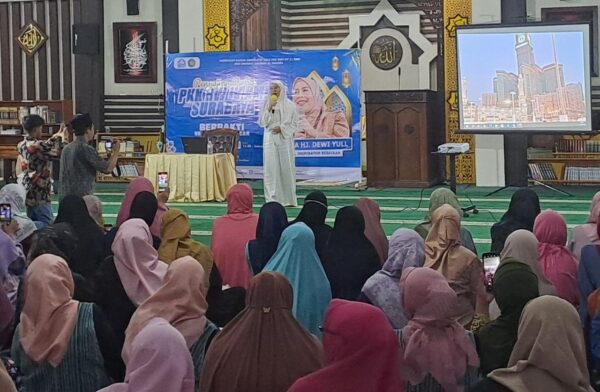 SURABAYA (Suarapubliknews) ~ Aktris sekaligus penyanyi legendaris, Bunda Hj. Dewi Yull, menjadi pembicara utama dalam acara Pengajian Rutin PKK RMH Surabaya. Bertempat di Masjid Al Wahyu, Rungkut Menanggal Harapan, Surabaya, beliau menyampaikan tausiyah bertema “Berbakti Meski Berbeda Pandangan,” yang berakar kuat dari kisah hidupnya.
