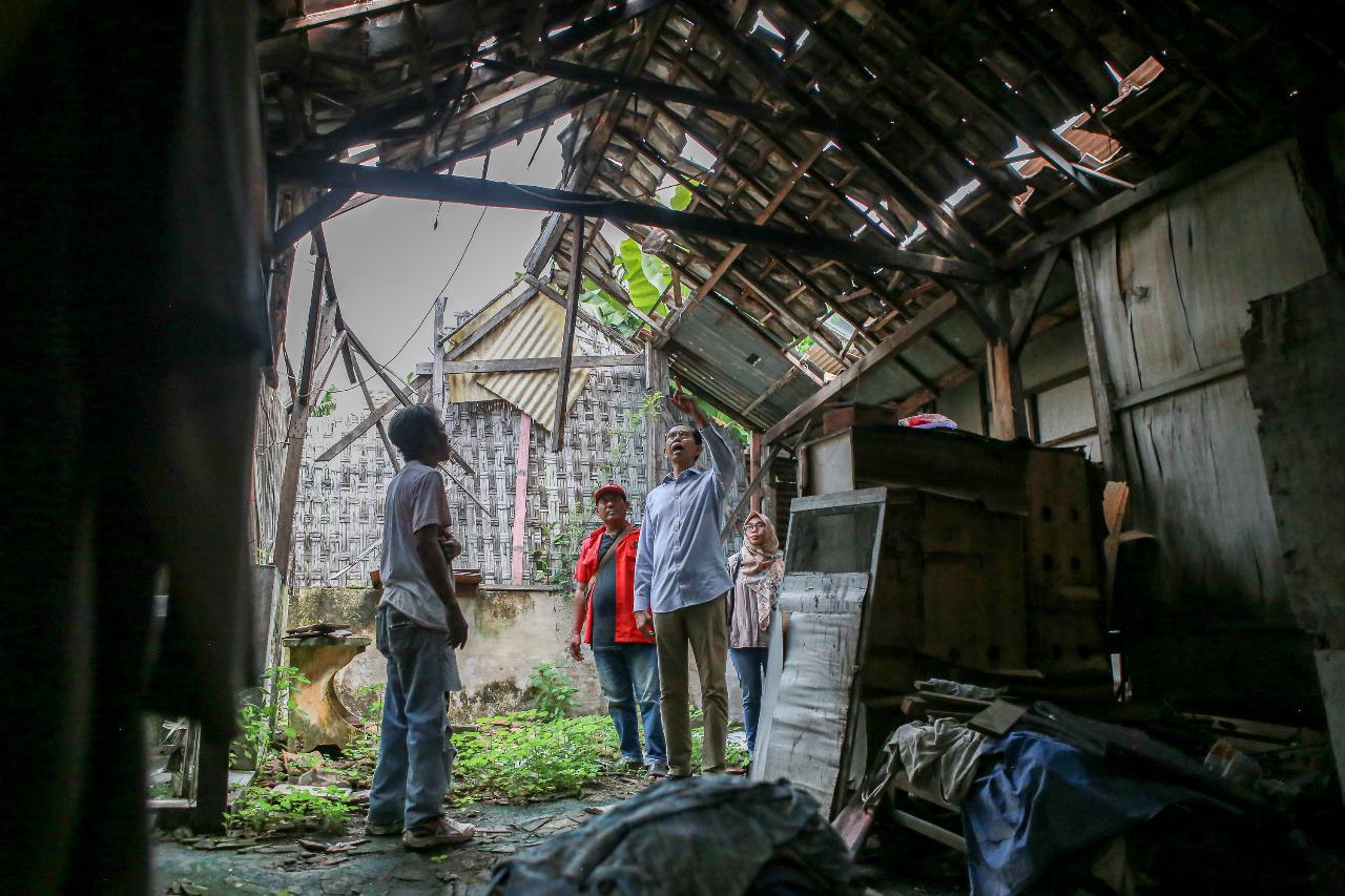 Kata Hadi, sudah berulang-kali diukur petugas, namun tidak kunjung dikerjakan sampai orangtunya meninggal. Ia pun menunjukkan bagian belakang rumah. Batang-batangnya atapnya sudah rapuh. Rentan ambruk.