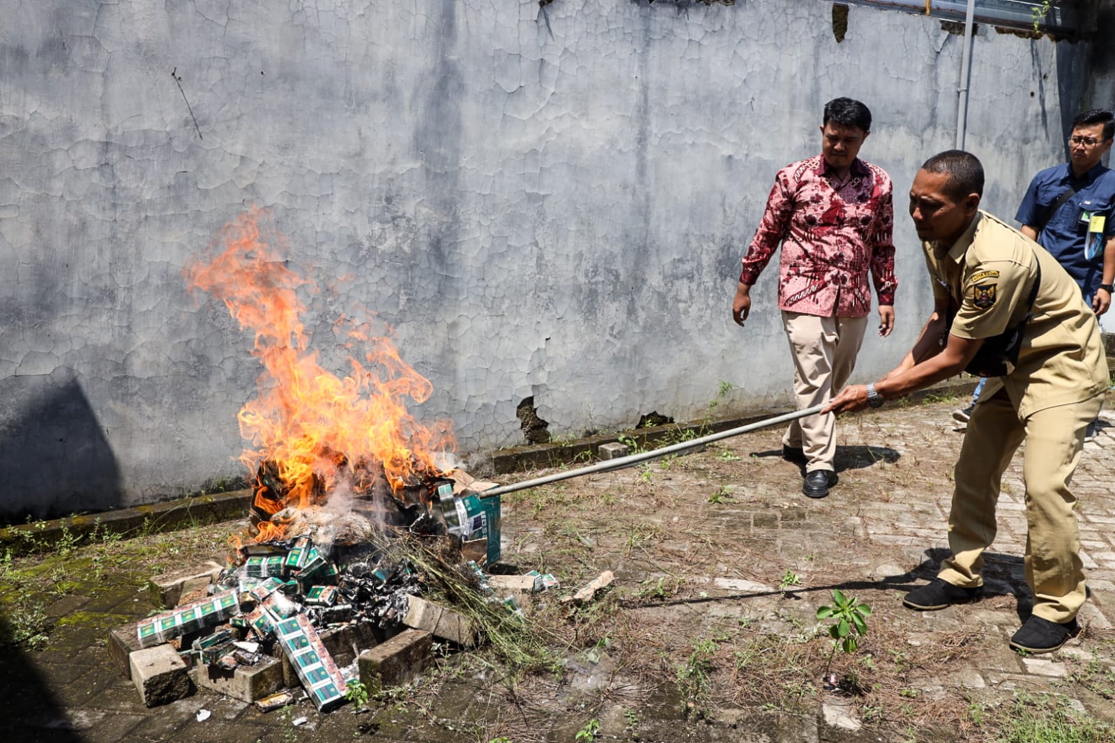Untuk barang yang dimusnahkan berupa 35.777 batang rokok dan 1.570 gram tembakau iris siap linting (TIS) hasil praktik pelatihan dari Pabrik Rokok Dua Dewi.Kemudian dari Pabrik Rokok Talining Jagad, petugas gabungan memusnahkan 6.791 batang rokok kretek serta 5.500 gram sisa tembakau yang tidak berbentuk lintingan.