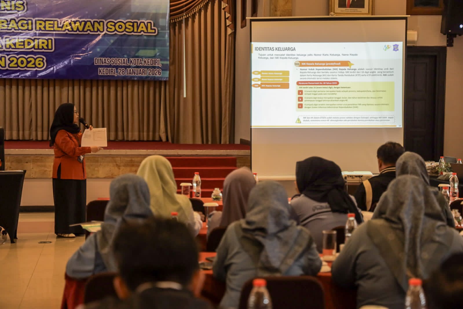 Kegiatan ini dilaksanakan di salah satu hotel di Kota Kediri dan dihadiri oleh pekerja dan relawan sosial yang terdiri yakni, anggota Tim Reaksi Cepat (TRC), TAGANA, Tenaga Kesejahteraan Sosial (TKS), Kemsos, serta pegawai Dinas Sosial Kota Kediri.