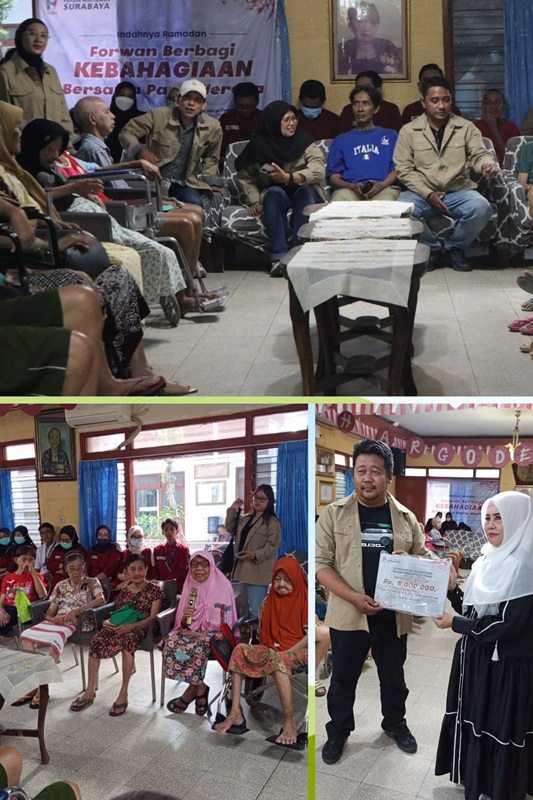 SURABAYA (Suarapubliknews) – Forum Wartawan (Forwan) Surabaya menyalurkan bantuan sosial kepada Panti Werda Hargodadali, Surabaya, Rabu (4/3/2026), dalam rangka kegiatan Ramadan.