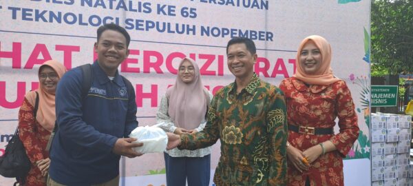 Acara yang berlangsung di Taman Fakultas Vokasi ITS tersebut membagikan 7.500 porsi nasi sehat yang disalurkan di tujuh titik strategis kampus, dan mendapat antusiasme besar dari mahasiswa.