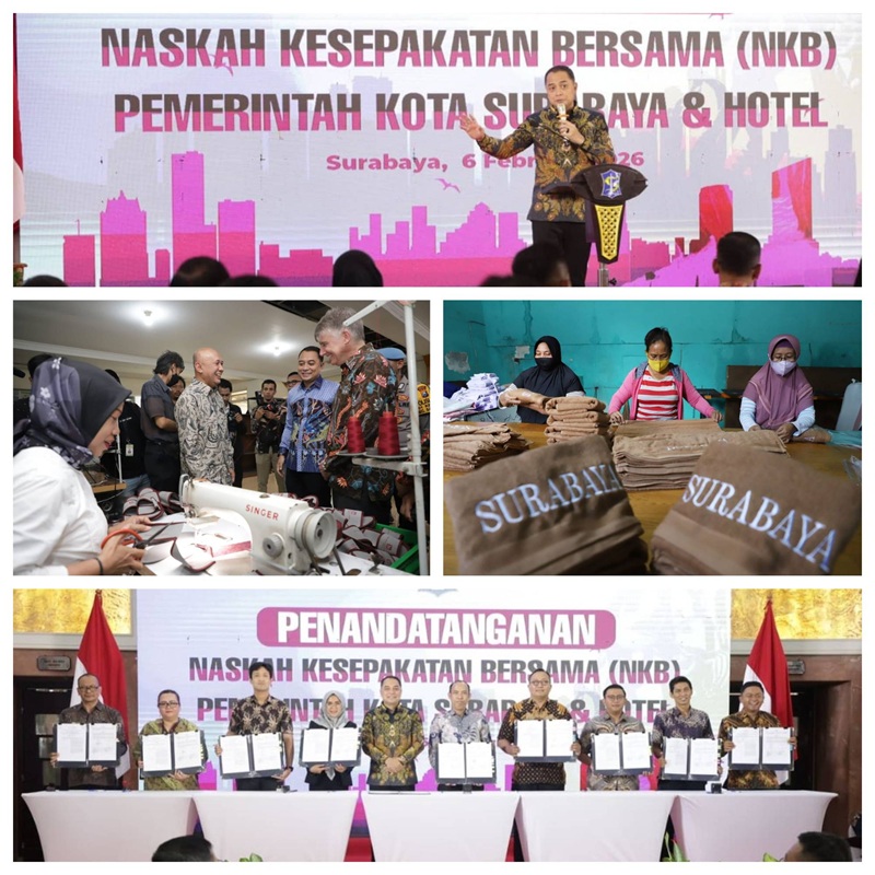 SURABAYA (Suarapubliknews) – Kota Surabaya memasuki babak baru dalam penguatan ekonomi kerakyatan, khususnya di sektor Usaha Mikro, Kecil, dan Menengah (UMKM). Melalui penandatanganan Naskah Kesepakatan Bersama (NKB) dengan 38 hotel, Pemerintah Kota (Pemkot) Surabaya mendorong integrasi kebutuhan industri perhotelan dengan produk UMKM lokal.
