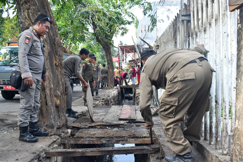 Kembalikan Fungsi Drainase, Lapak dan Kanopi di Manukan Ditertibkan