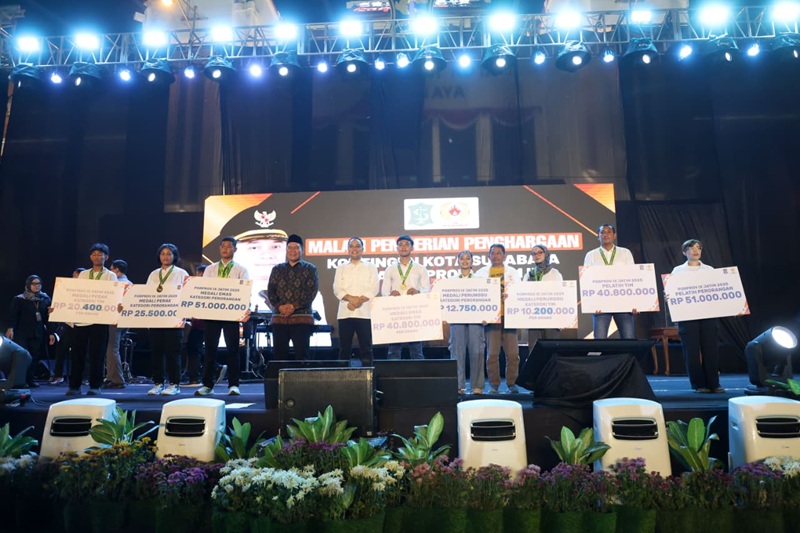 Selain itu, Wali Kota Eri menyebut total anggaran untuk bonus para atlet sempat disesuaikan dengan perubahan jumlah medali. Sebab, perolehan medali perak dalam Porprov Jatim 2025 naik dari prediksi awal. “Total anggaran yang kami keluarkan Rp42.702.300.000 untuk memberikan bonus kepada atlet-atlet Kota Surabaya,” katanya.