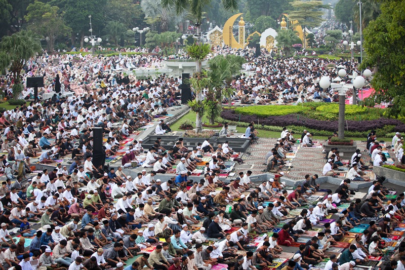 Ibadah Salat Idulfitri ditutup dengan sesi ramah tamah dan saling memaafkan antar jemaah, menciptakan suasana hangat di jantung Kota Pahlawan. (q cox)