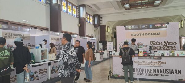 Kegiatan yang berlangsung di Balai Pemuda Surabaya ini menjadi ruang kolaborasi antara pegiat kopi, barista, roastery, dan pemerintah daerah untuk menggalang donasi bagi wilayah terdampak bencana di Sumatra, khususnya Aceh.